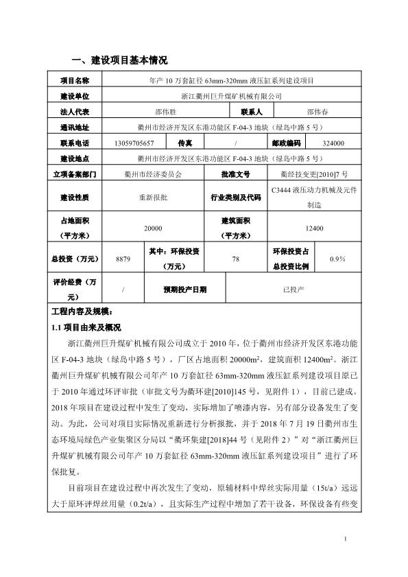 年產10萬套缸徑63mm-320mm液壓缸系列建設項目